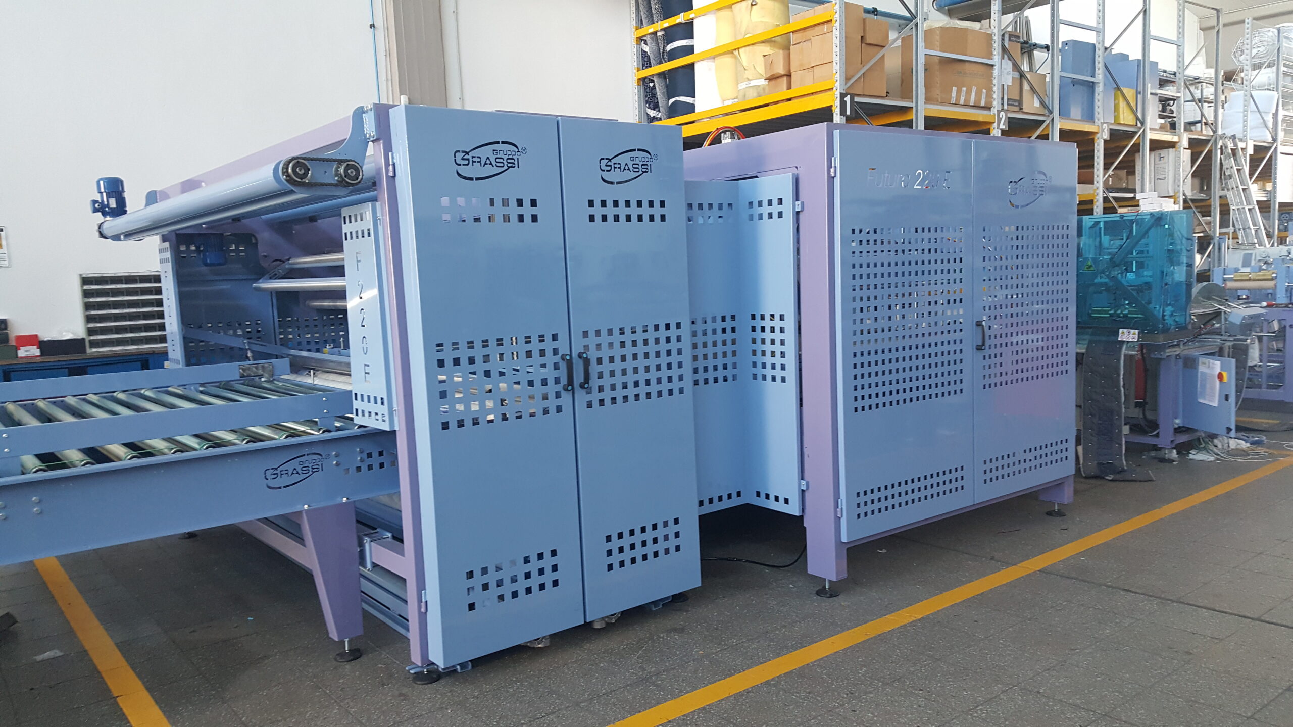The FUTURA technology is a large flexible packing line, ideally designed for different products to be packed, for example: mattresses, foam blocks, furnitures, sofas, sommier, box-springs, etc.