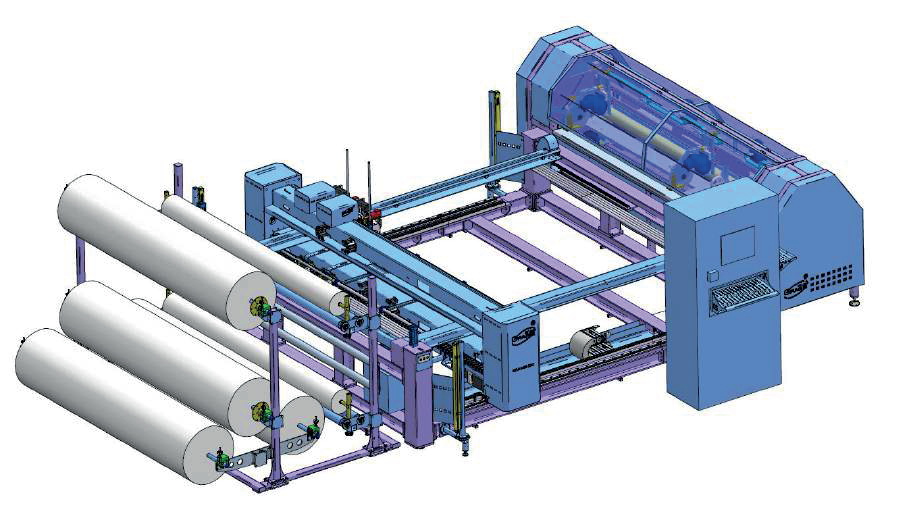 The MCH 2400 CNC 1 / 2 is an electronic quilting machine with continuous feed and one/two DUERKOPP ADLER lockstitch heads, ideal for high-quality quilting with customizable embroidery.