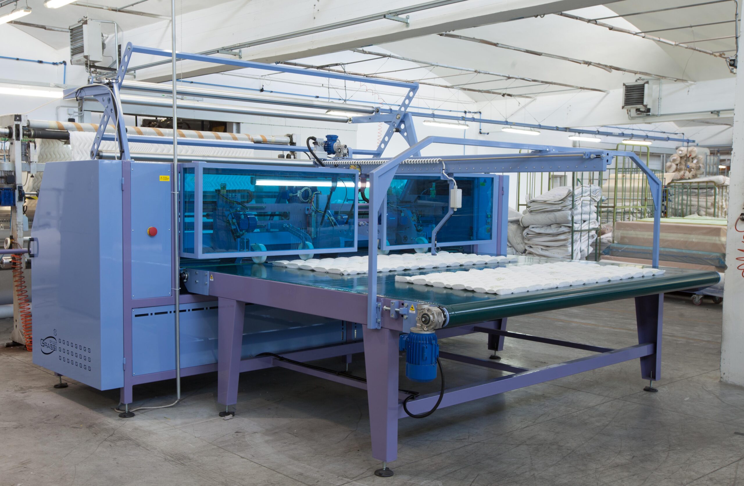 The TGM 3.2 Automatic Electronic Cutter is designed for cutting quilted fabric panels with precision.